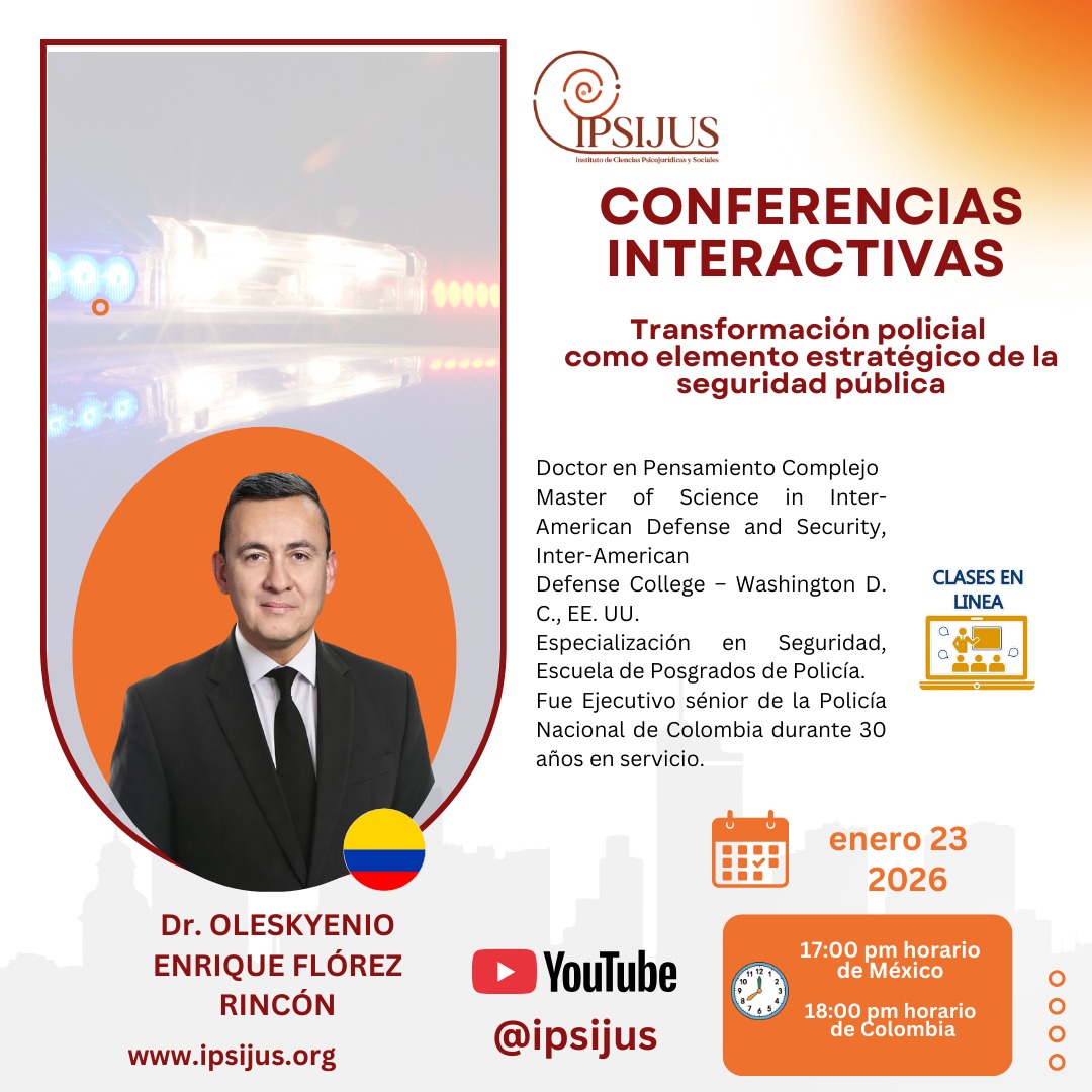 🧡🐚 IPSIJUS TE INVITA A LA CHARLA VIRTUAL 🤔 Transformación policial como elemento estratégico de la seguridad pública 👮🏽🚨