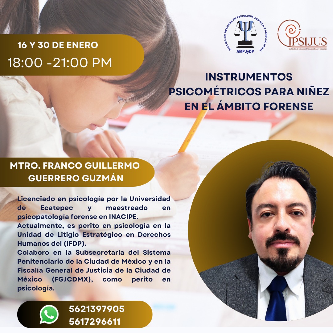 Participa en el Curso-Taller: Instrumentos psicométricos para la niñez en el ámbito forense 🧠📚